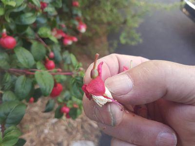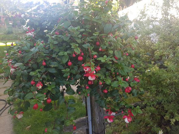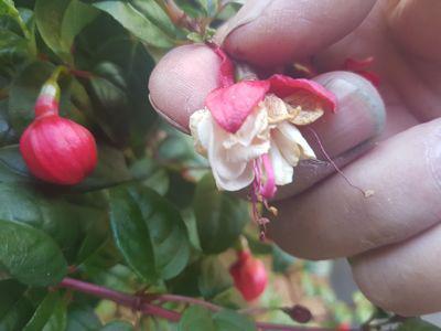 - Dans la jardinière de Fushia (rouge et blanc) il y a plusieurs boutons de fleurs et quelques fleurs. En enlevant les graines qui sont assez grosses, tous les boutons floraux auront la chance de fleurir.